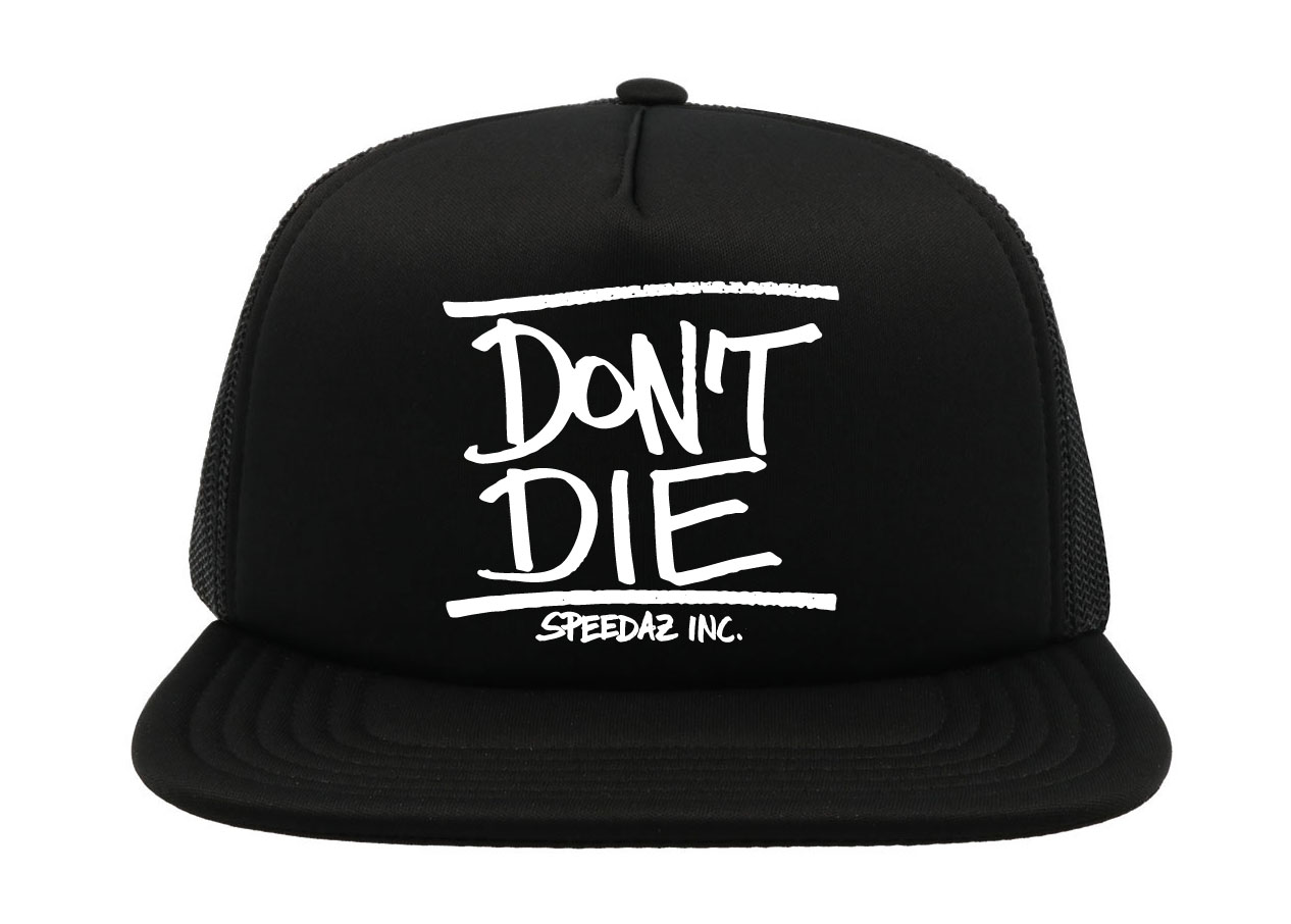 Klassischer Snap Back Trucker Hat mit Don't-Die-Motiv von Speedaz Inc.